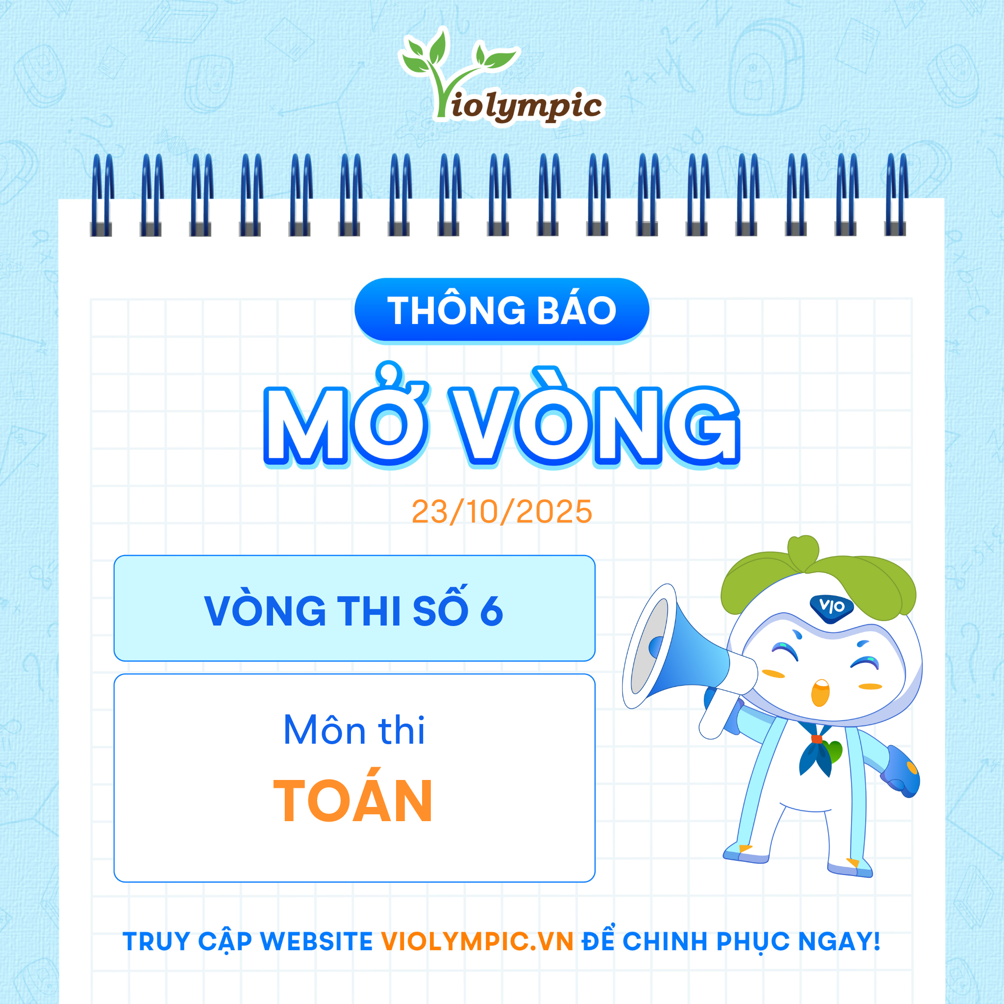 Ban tổ chức cuộc thi Violympic xin thông báo, Đúng 8h30 ngày 23/10/2025, vòng thi tự luyện số 06 môn [...]