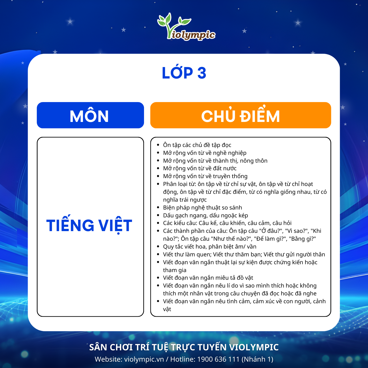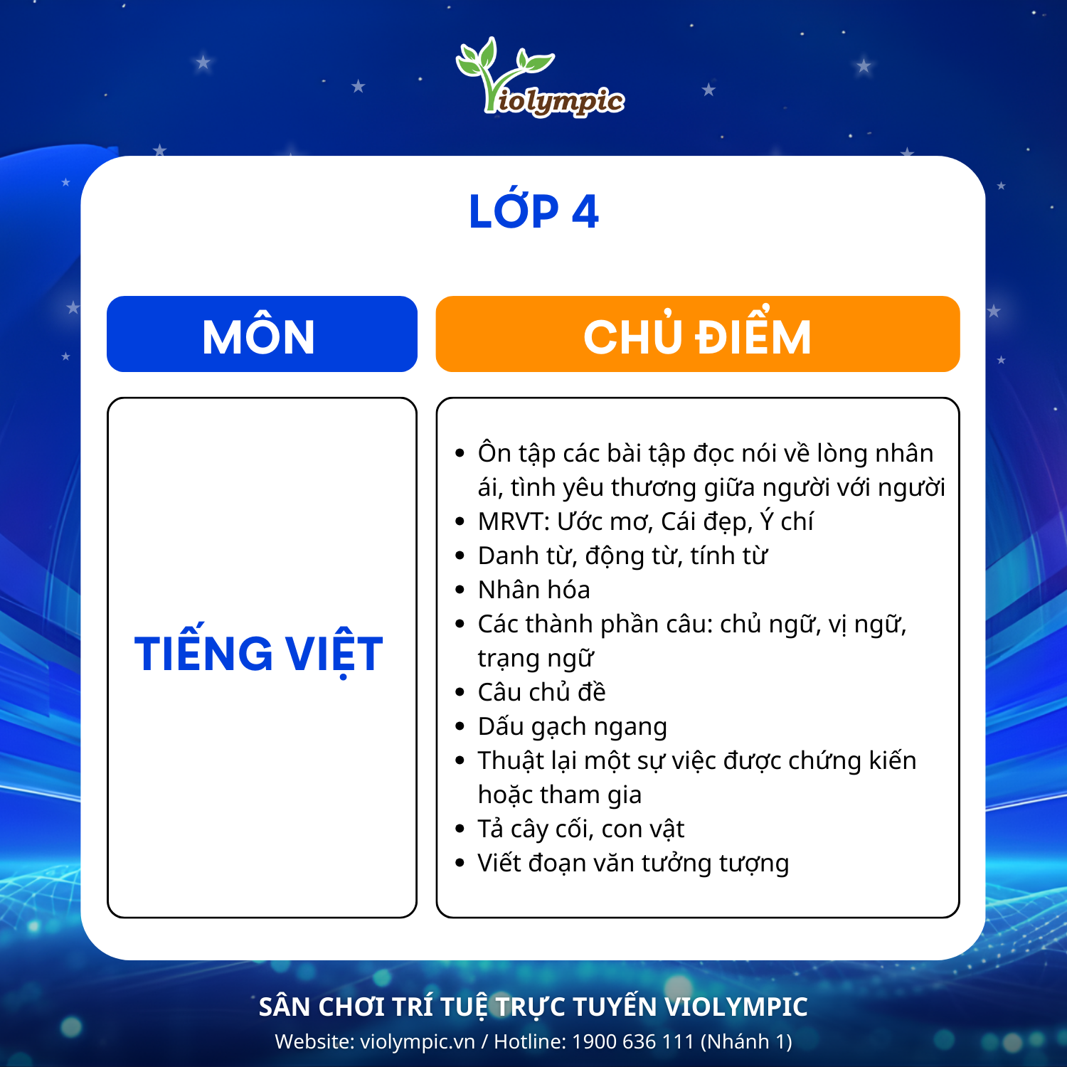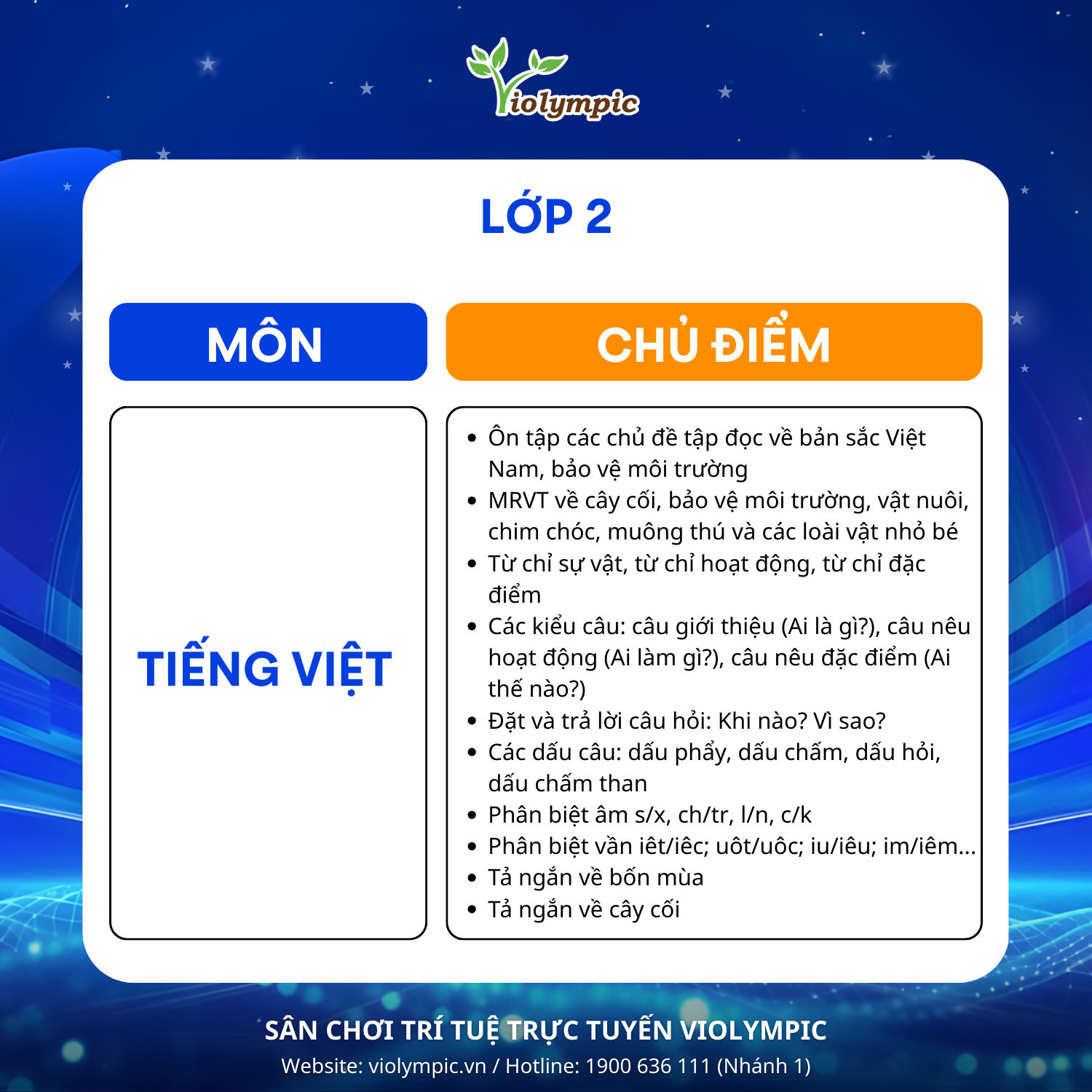 BTC Violympic Quốc gia gửi tới các em học sinh các chủ điểm ôn tập môn Tiếng Việt vòng thi Quốc gia năm học 2025 – 2026.