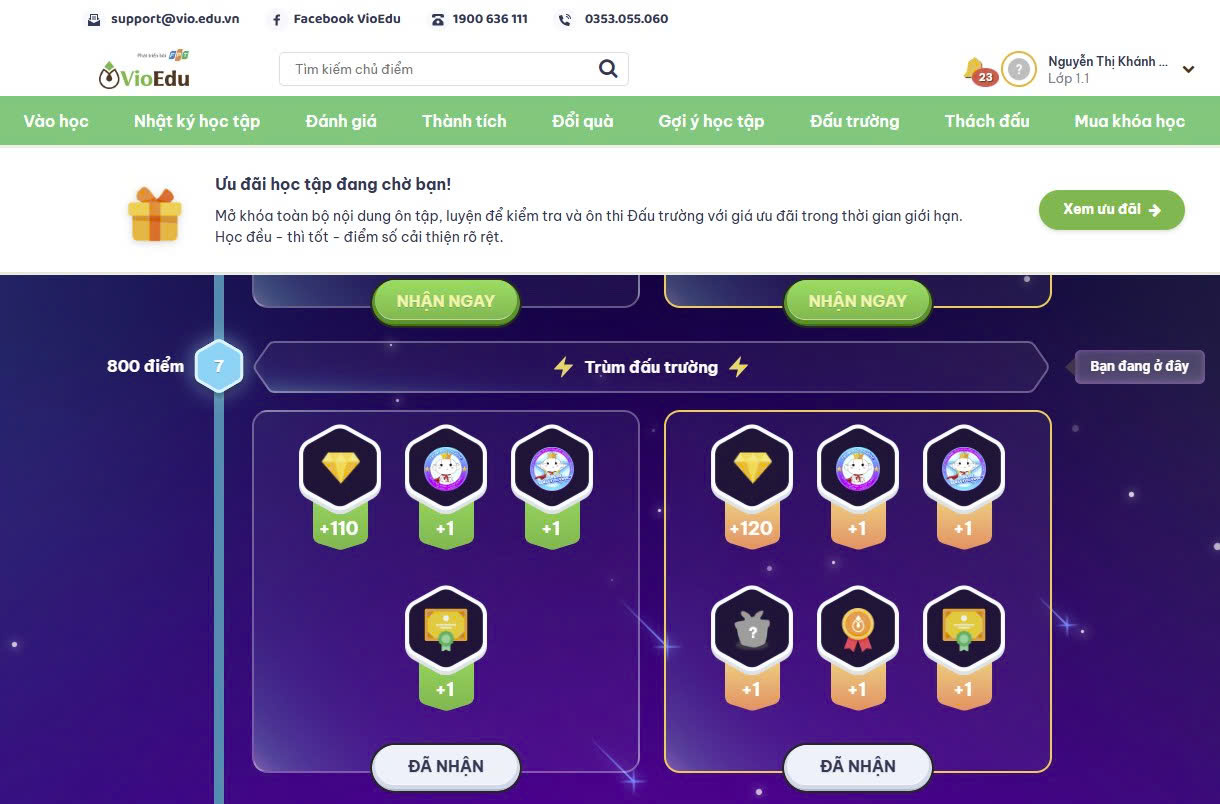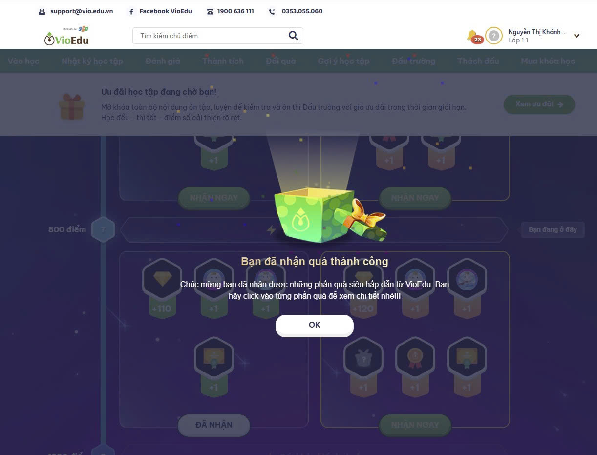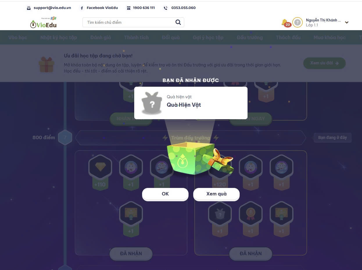 Đối với các tài khoản còn hạn khóa học, học sinh sẽ được nhận quà hiện vật từ VioEdu.