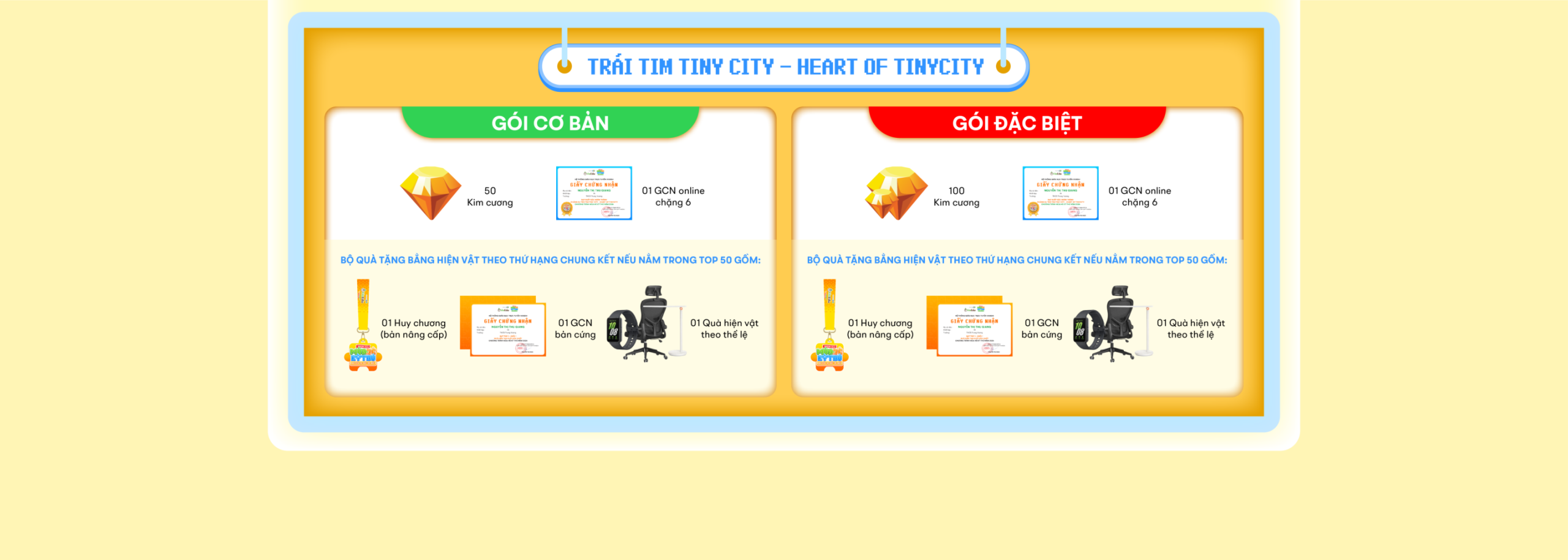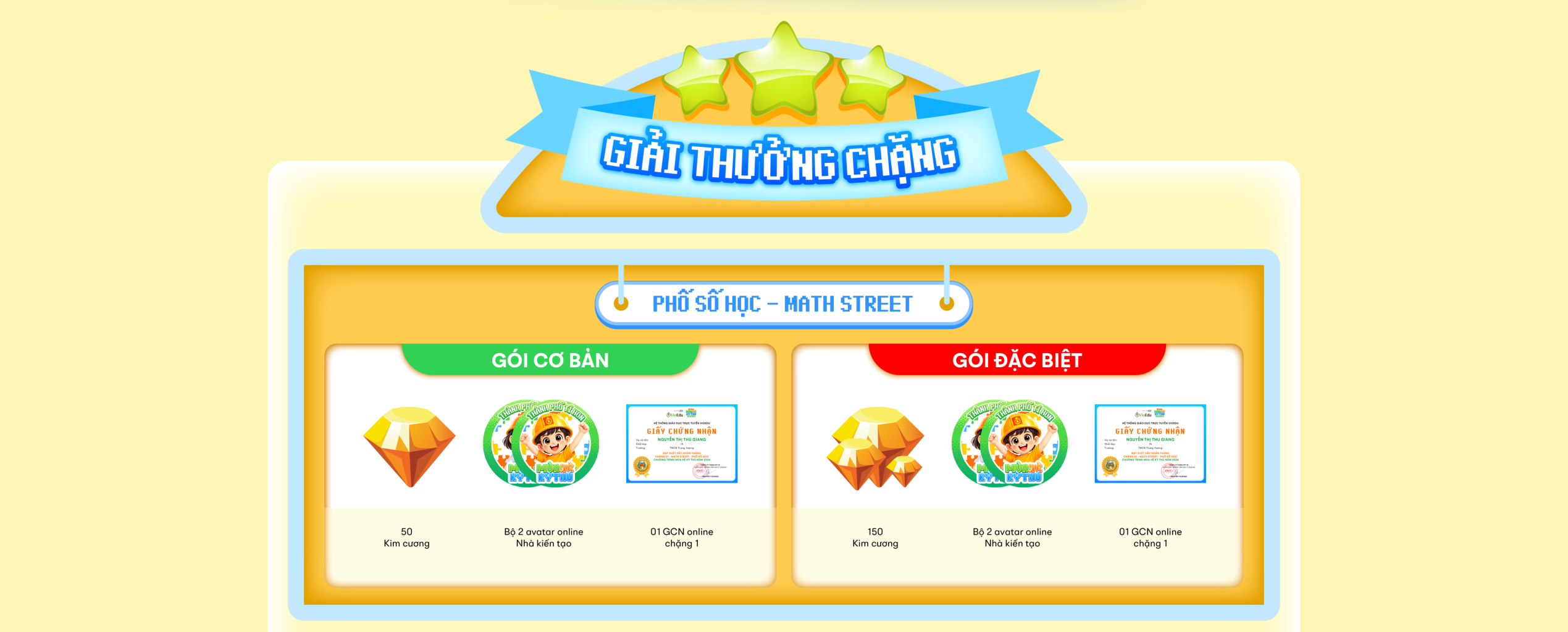 Tham gia các chặng, học sinh sẽ nhận được các phần thưởng như sau: