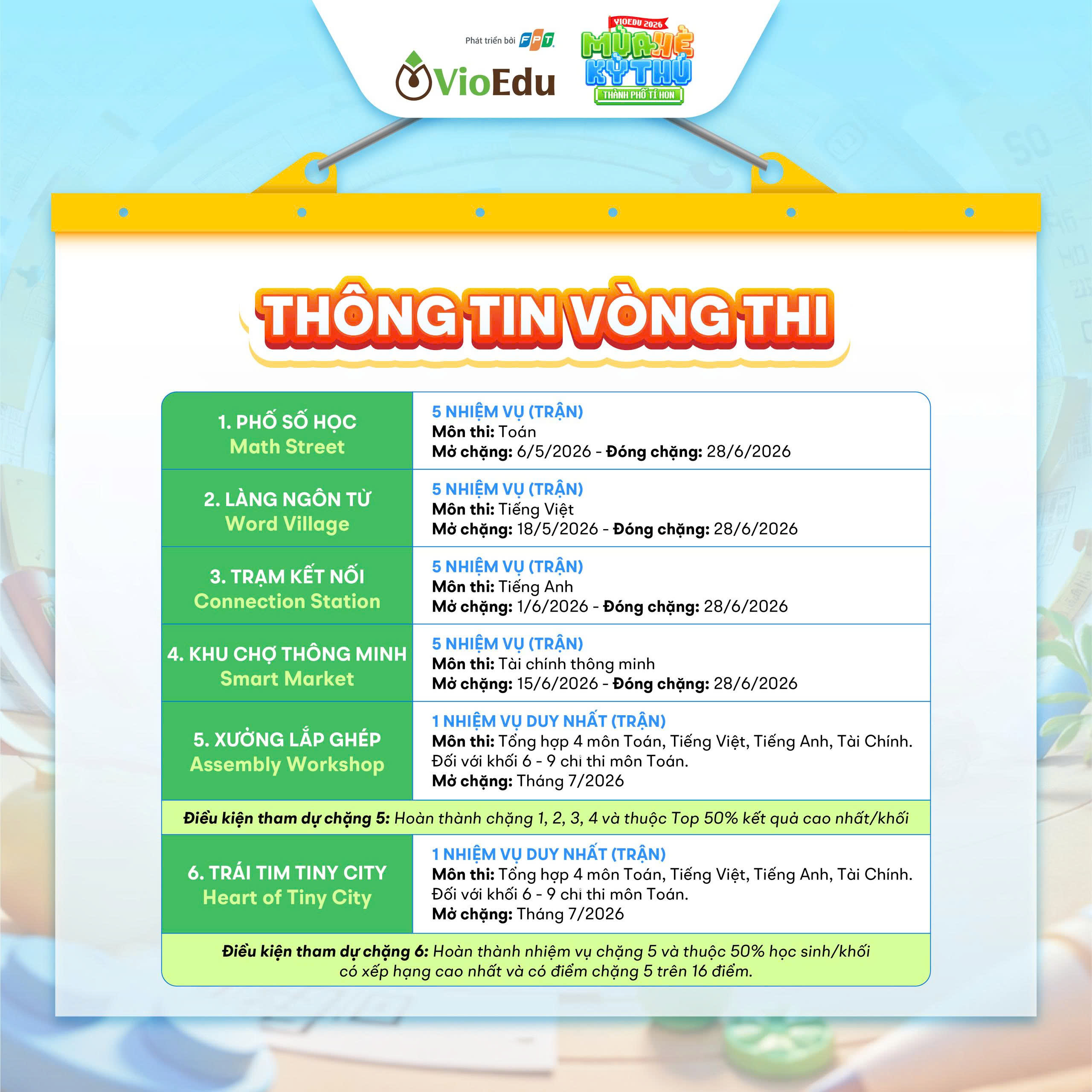 • Điều kiện tham gia: Học sinh cần có tài khoản VioEdu và đăng ký gói tham dự sân chơi.