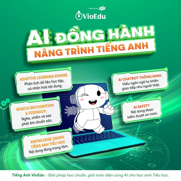 Với sức mạnh của AI, Tiếng Anh VioEdu không chỉ tạo ra những bài học thú vị, mà còn đồng hành như một “trợ lý ảo thông minh”, giúp mỗi học sinh phát triển toàn diện kỹ năng và tự tin chinh phục tiếng Anh!
